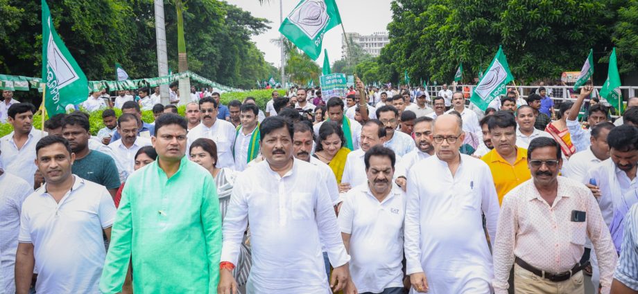 ପୂର୍ବ ନିର୍ଦ୍ଧାରିତ କାର୍ଯ୍ୟକ୍ରମ ଅନୁଯାୟୀ, ଆଜି ରାଜଭବନ ସମ୍ମୁଖରେ ଏକ ବିଶାଳ ଗଣଧାରଣା ଦିଆଯାଇଥିଲା । ଏହି ଗଣଧାରଣାରେ ହଜାର ହଜାର ଚାଷୀଙ୍କ ସମେତ ବିଜୁ ଜନତା ଦଳର ନେତା ଓ କର୍ମୀମାନେ ଯୋଗ ଦେଇଥିଲେ । ଦଳର ବରିଷ୍ଠ ନେତାମାନେ, ଖରିଫ ଚାଷ ପାଇଁ ଚାଷୀମାନେ କିପରି ହନ୍ତସନ୍ତ ହେଉଛନ୍ତି ଓ ରାଜ୍ୟ ସରକାର ସାର ଯୋଗାଇବାରେ, ସାରର କଳାବଜାରୀ ରୋକିବାରେ ସମ୍ପୂର୍ଣ୍ଣ ବିଫଳ ହୋଇଛନ୍ତି ବୋଲି ଅଭିଯୋଗ କରିଥିଲେ । ସାର ବ୍ୟାଗ୍ର ମୂଲ୍ୟ ୨୪୨ ଟଙ୍କା ରହିଥିବା ବେଳେ, ଏହା ବଜାରରେ ୮୦୦ରୁ ୧୦୦୦ ଟଙ୍କା ପର୍ଯ୍ୟନ୍ତ ମୂଲ୍ୟରେ ବିକ୍ରି ହେଉଛି । ଗତ ଦୁଇ ଦଶନ୍ଧିରେ, ରାଜ୍ୟର କୃଷକ ମାନେ ସାରର ଅଭାବକୁ ନେଇ ଏଭଳି ଅଭାବନୀୟ ପରିସ୍ଥିତି ରାଜ୍ୟରେ କେବେବି ସୃଷ୍ଟି ହୋଇନଥିଲା । ସାରର ଅଭାବ ଦେଖା ଦେବା ପରେ ତୁରନ୍ତ ପୂର୍ବତନ ମୁଖ୍ୟମନ୍ତ୍ରୀ ତଥା ବିରୋଧୀ ଦଳ ନେତା ଶ୍ରୀ ନବୀନ ପଟ୍ଟନାୟକ କେନ୍ଦ୍ର ସାର ଓ ରସାୟନ ମନ୍ତ୍ରୀଙ୍କୁ ଚିଠି ଲେଖି ଓଡିଶାକୁ ପର୍ଯ୍ୟାପ୍ତ ସାର ଯୋଗାଇ ଦେବା ପାଇଁ ଅନୁରୋଧ କଲେ । କିନ୍ତୁ, କୌଣସି ସୁଫଳ ମିଳିଲା ନାହିଁ । ସାର ସ୍ଥିତିକୁ ମୁଖ୍ୟମନ୍ତ୍ରୀ ଦୁଇ ଦୁଇ ଥର ସମୀକ୍ଷା କଲେଣି । ରାଜ୍ୟରେ ପର୍ଯ୍ୟାପ୍ତ ପରିମାଣରେ ସାର ମହଜୁଦ ଥିବା ରାଜ୍ୟ ସରକାର ଦାବି କରୁଛନ୍ତି, ହେଲେ ରାଜ୍ୟର ପ୍ରାୟ ସମସ୍ତ ଜିଲ୍ଲାରେ ସାର ନପାଇ କୃଷକ ମାନେ ରାଜରାସ୍ତାକୁ ଓହ୍ଲାଉଥିବା ଖବର ଗଣମାଧ୍ୟମରେ ପ୍ରକାଶ ପାଉଛି । ରାଜ୍ୟରେ ଖରିଫ ଧାନ ଉତ୍ପାଦନ ଅଧିକ ହେଲେ, ରାଜ୍ୟ ସରକାରଙ୍କୁ ଅଧିକ ବୋନସ ଦେବାକୁ ପଡିବ ବୋଲି ରାଜ୍ୟ ସରକାର ଖରିଫ ଉତ୍ପାଦନକୁ କମ୍ କରିବା ପାଇଁ ସାର ଅଭାବର ଷଡ଼ଯନ୍ତ୍ର କରିଛନ୍ତି ବୋଲି ବିଜେଡି ନେତାମାନେ ଅଭିଯୋଗ କରିଛନ୍ତି ।